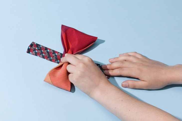 Отрезаем еще одну часть первого галстука для закрепления бантика.