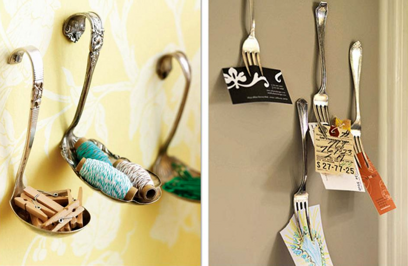 Необычные предметы можно получить из пластиковой одноразовой посуды: тарелок, стаканов, ложек и вилок. Например, панно в виде вееров из вилок и кружева, розу ветров и многое другое.