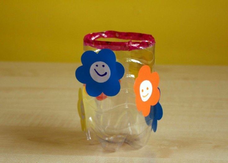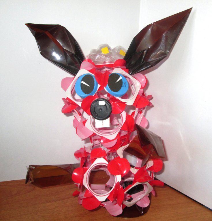 Аналогично контейнерам могут использоваться крышечки от бутылок и многое другое. Главное, позаботиться о правильном общем оформлении. Задействуют цветную бумагу, нитки, лески, карандаши. Соединения проводят с помощью клея или скобок. Последние лучше использовать, если поделка будет выставлена в качестве «экспоната» в садике.