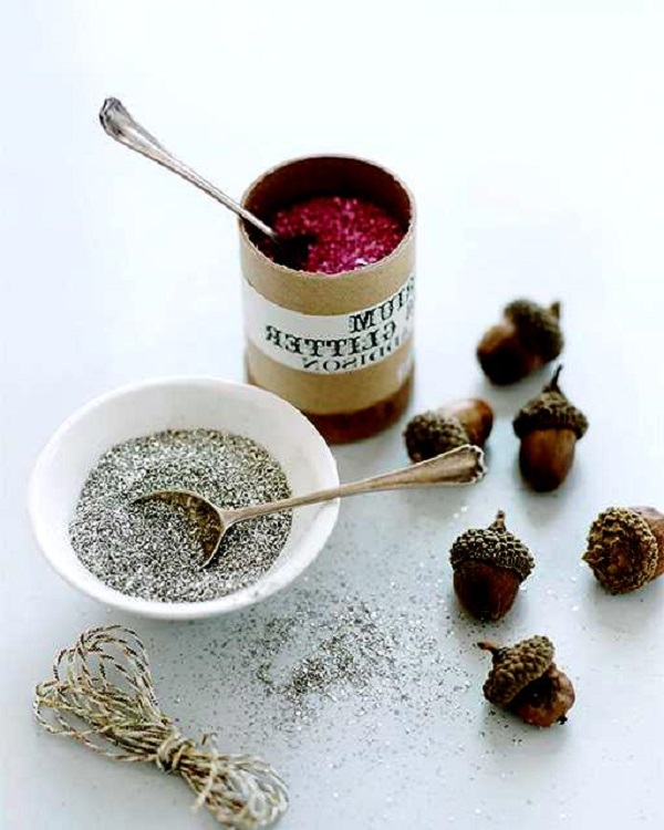 Можно сделать новогодние украшения для елки и дома в форме новогодних подарков. Если у вас в коробке пылятся старые безделушки, обработайте их лаком, и притрусите блестками, и у вас получиться очень оригинальная новогодняя игрушка.