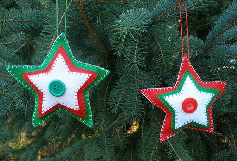 Прелестно и оригинально выглядят новогодние украшения, изготовленные из ткани и фетра, пряжи разных видов.