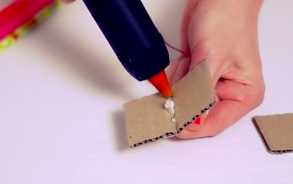 Нарезаем узкие полоски 12 штук по 1 см. Соединяем их как при плетении корзины и получаем донышко. Загибаем одну полоску под другую. Затем каждую крайнюю полоску склеиваем, и так делаем со всех сторон.