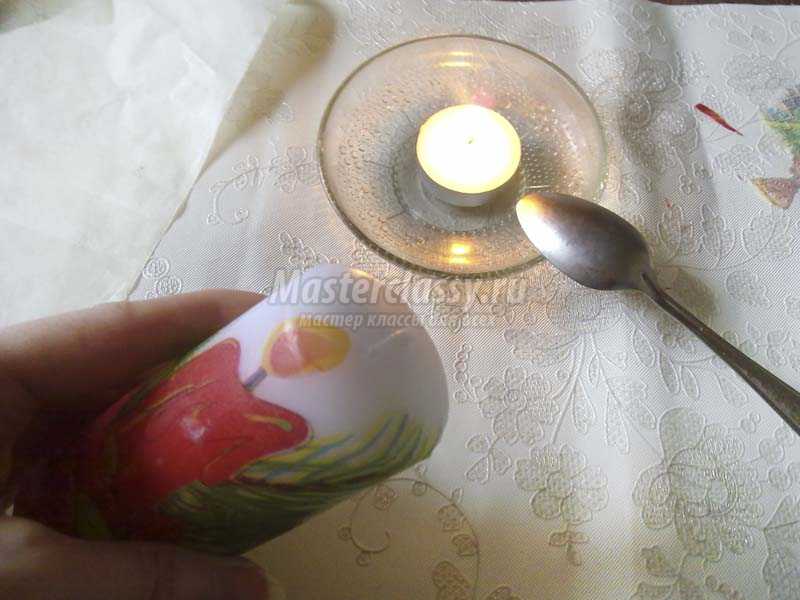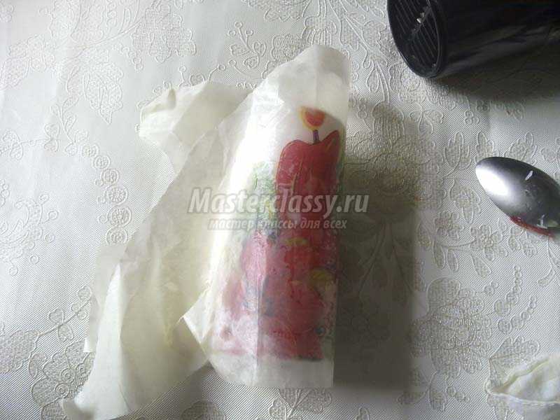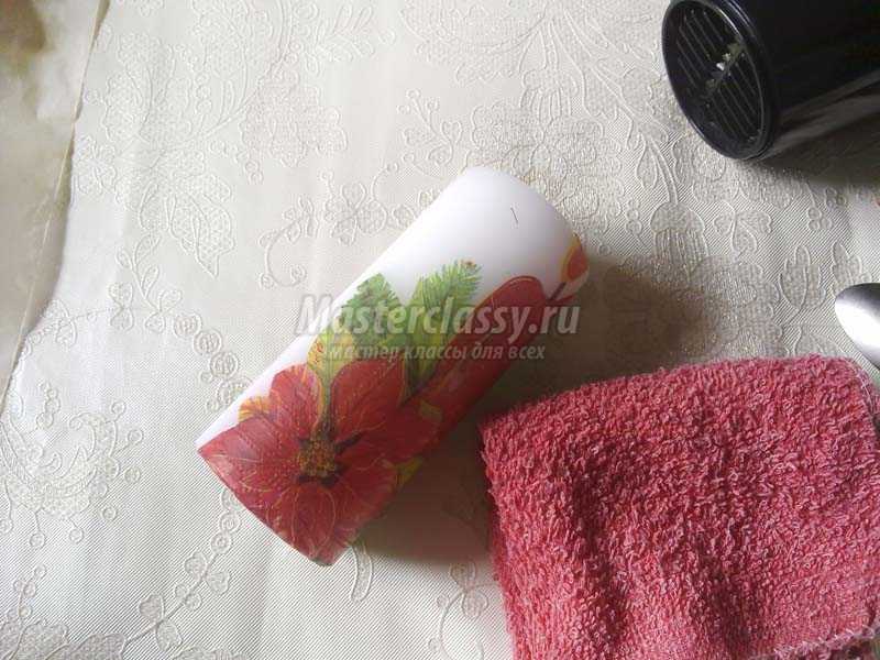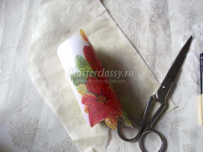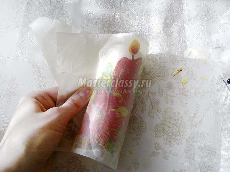 небольших усилий придавливаем мотив к свече. Если вы видите, что салфетка