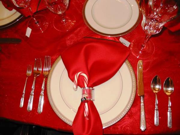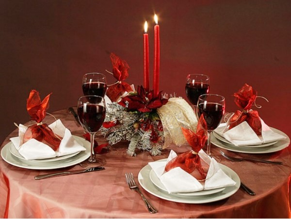 Скатерть для новогоднего стола можно выбрать белую или красную. Подойдут и оранжевые, желтые, позолоченные оттенки. Салфетки не должны сливаться с основным текстильным покрытием, поэтому подбирайте оттенки, соблюдая контрастность.