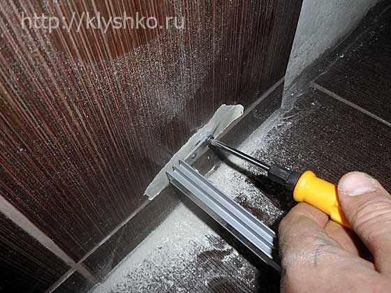 Длина ванной комнаты у меня 1,64 м длин приобретенного экрана 1,68м. 4см алюминиевых направляющих я просто спилил ножовкой по металлу.
