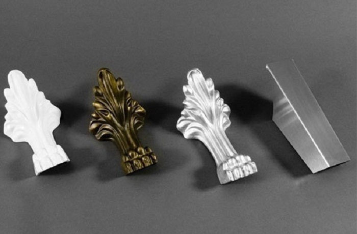 - Фальш-ножки от основных, отличают визуально. Опорные, выполнены из надёжного, крепкого металла. Декоративные – просто накладки. Стенки у них тонкие, если опоры металлические, то ребра жесткости отсутствуют.