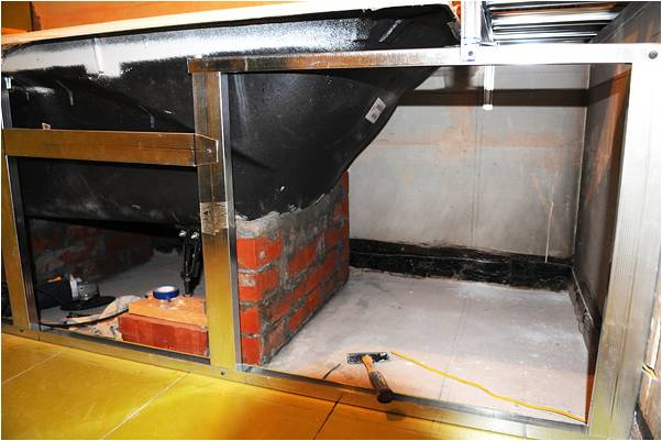 - Если купель встраиваемая, то сооружение упоров из стройматериалов снизит нагрузку на металлические крепления и распределит вес чаши с водой на большую площадь. Центрирующими опорами будут ножки конструкции.