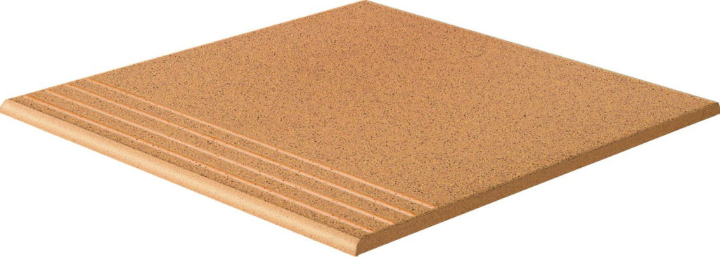 - Осуществляя монтаж плитки без углового закругления на улице, на краю ступени устанавливается угловой профиль с противоскользящим покрытием.