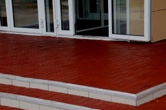 Несомненным лидером здесь является резиновое покрытие для крыльца. Оно представлено в нескольких видах, во-первых, это ковры с шипованной поверхностью, монолитное резиновое покрытие с разным рельефом, и модульную защиту — резиновая плитка для крыльца, как правило, с эффектом «антикаблук» и грязеотталкивающими свойствами.