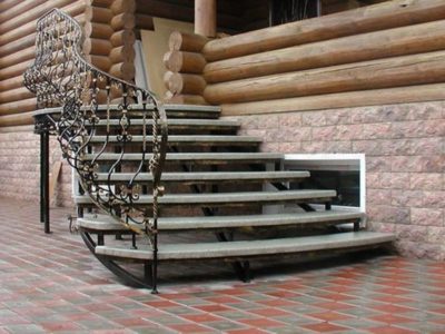 Металлическое – выполненное из прочных и покрытых противокоррозионными составами металлических элементов (перил, ступеней, каркаса);