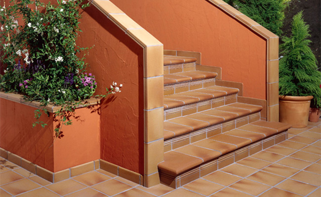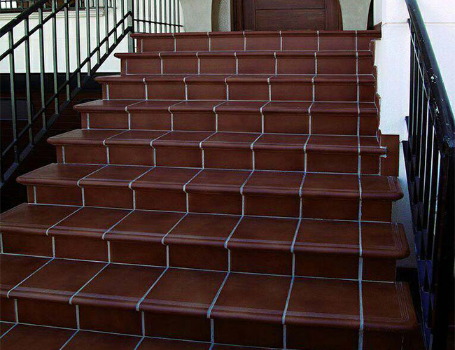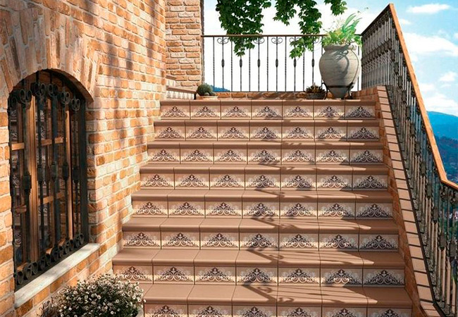 Сегодня определенные виды отделочной керамики совсем не уступают по прочности настоящему камню, например, этими свойствами владеют клинкерный кирпич и керамический гранит. Однако, не обращая внимания на долговечность, далеко не любая керамика подойдет для того, чтобы ею была реализована облицовка наружных ступенек лестницы крыльца. Предпочтение предпочтительнее отдавать рифленой поверхности. На крыльце должна быть уложена только специализированная шершавая плитка, обеспечивающая по максимуму крепкое сцепление поверхности лестницы и подошв обуви.