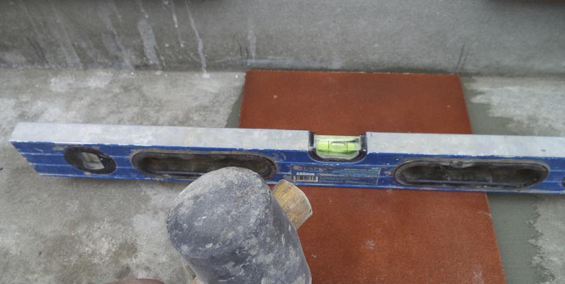 - перед монтажом плиточных заготовок поверхность подушки увлажняется, осуществляется ее выравнивание стяжкой.