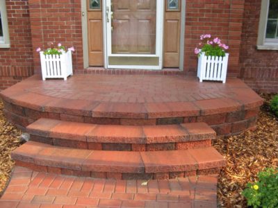 Если предусматривается круглая или овальная форма крыльца, бордюрный камень можно заменить брусчаткой (кирпичом).