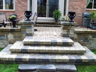 - тротуарная из бетона – позволяет облицовывать лестницу и прилегающие дорожки в едином образе. Поверхность плитки быстро теряет былую привлекательность, но поддается обновлению путем окрашивания;