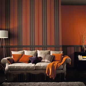 Важное замечание, касающееся ярких вариантов. Полосатые обои насыщенных цветов смотрятся хуже, если ими оклеить всю комнату