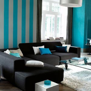 Солидно будут смотреться черно-белые полоски в сочетании с мебелью черного цвета. Светлая мебель идеально будет смотреться с обоями в голубую полоску.