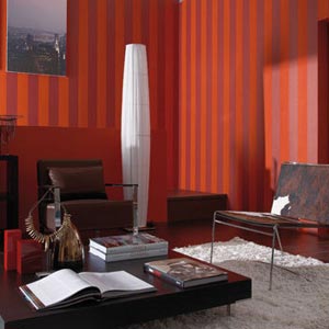 Контрастные тонкие полосочки ярких цветов подходят для оригинальных современных интерьеров, но они могут быть тяжелыми для зрительного восприятия. При долгом нахождении в таком интерьере глаза могут устать, а полосатые яркие обои быстро надоедят. В ярком и контрастном варианте намного лучше смотрится широкая полоска, она не так тяжела для глаза. Хорошо будут смотреться яркие полосатые обои в интерьере гостиной, выполненной в стиле китч или поп-арт. Особенно любят яркую полоску молодые хозяева, которые часто собирают друзей и устраивают шумные посиделки. Такие линии символизируют динамику, энергию, потому разноцветные пестрые обои лучше всего подойдут для гостиной.