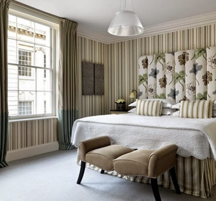 Полосатые обои могут создать шикарный интерьер с другим принтом: