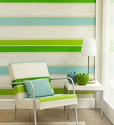Если отдавать предпочтение ярким полоскам, например, желтым, или зеленым, вы существенно оживите свой привычный интерьер, сделаете его более приятным.