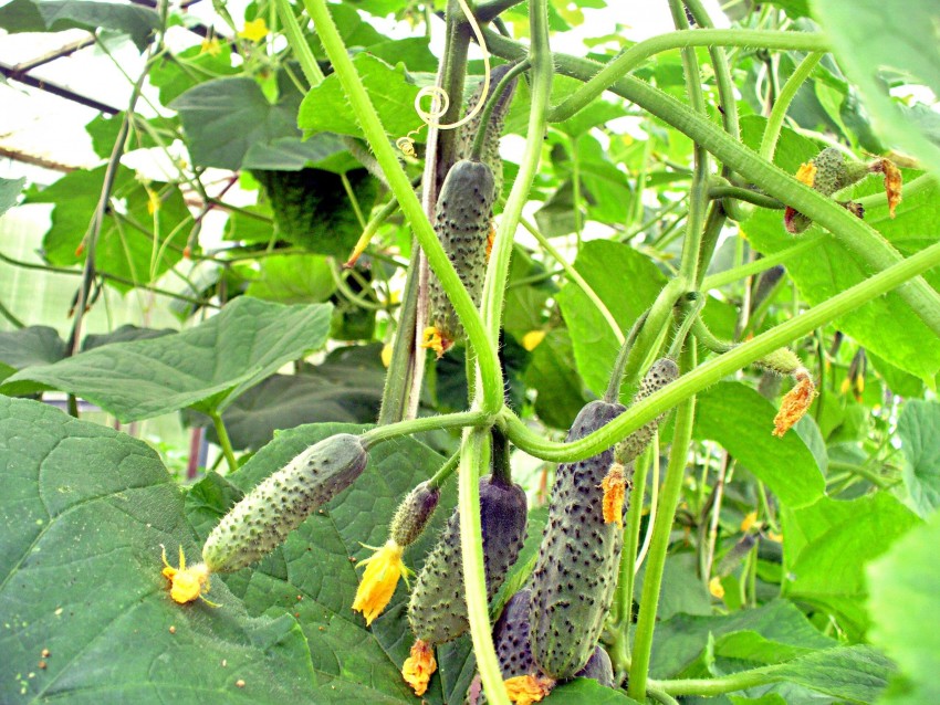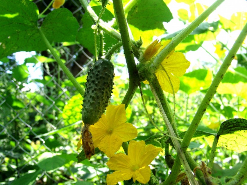 Чтобы огурцов созревало много и все они были ровными и красивыми, вовремя избавляйтесь от засохших и больных листочков, отщипывайте мужские цветки и уродливые зеленцы, чтобы растение не тратило силы на их развитие.
