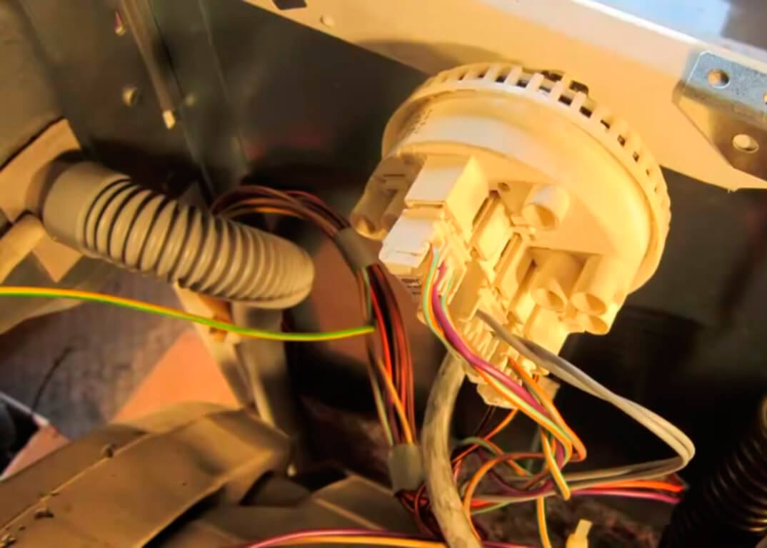 Если же сломался прессостат, к сожалению, починить его не получится, он не подлежит ремонту. Придется покупать новый и вызывать мастера для установки. Однако не спешите отчаиваться, возможно, прессостат тоже всего лишь засорился. Дополнительно разбирать ничего не нужно, деталь так же находится в верхней части машинки Bosch. Отсоедините от прессостата трубку и хорошенько промойте проточной водой. Поставьте на место и посмотрите, не исчез ли код ошибки. Если нет, значит, вы имеете дело с поломкой.