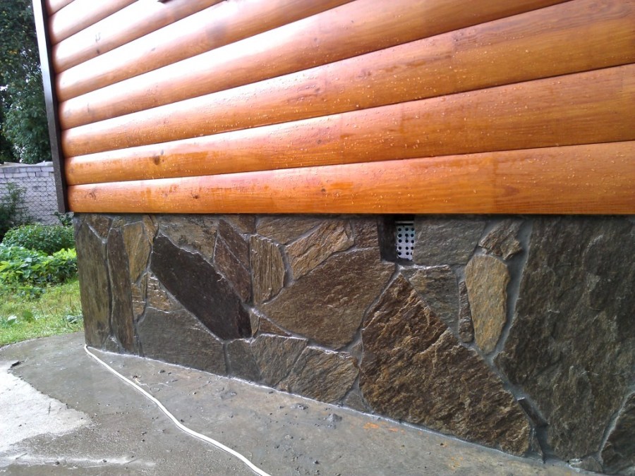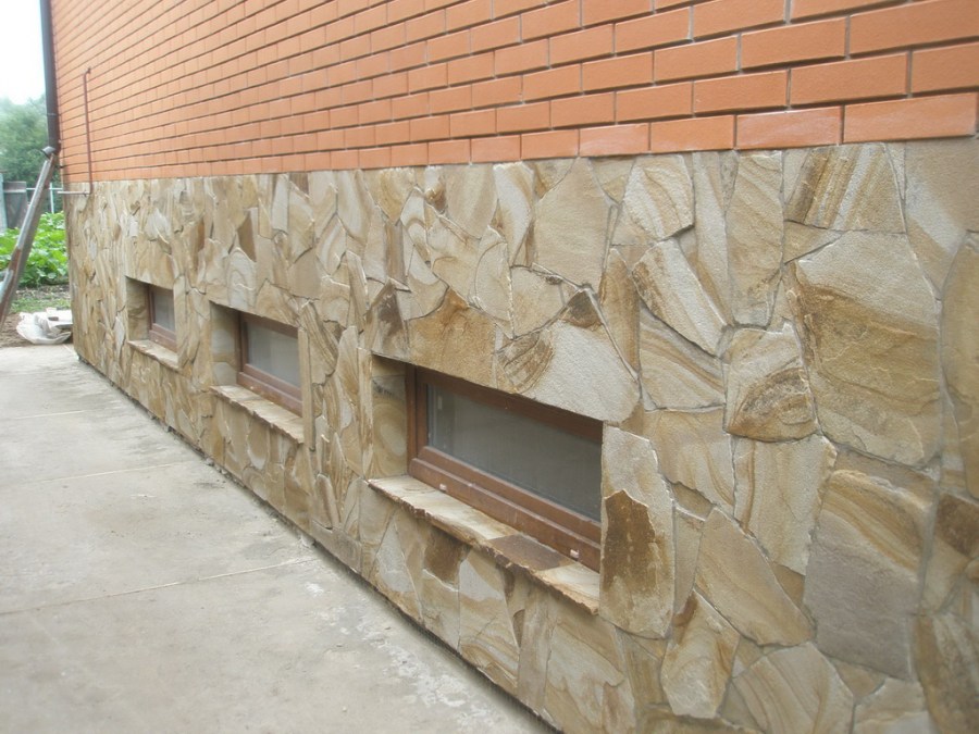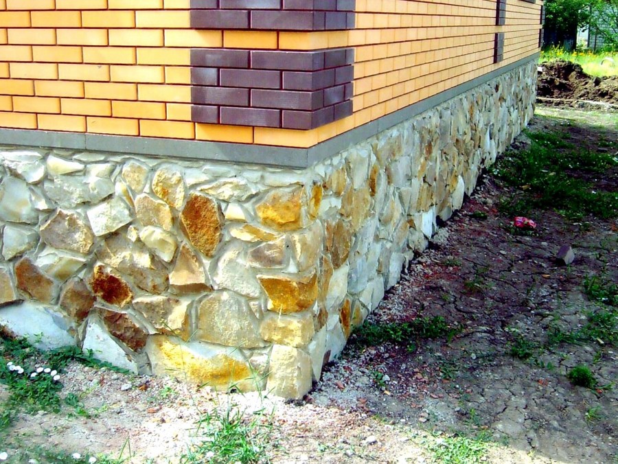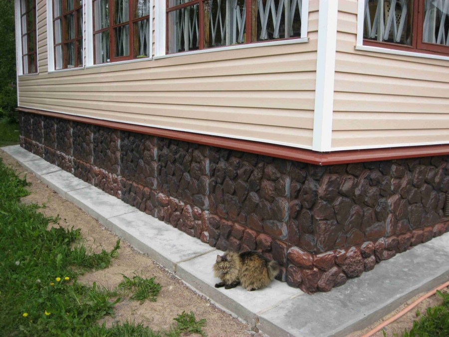 Востребованный способ отделки надземной части фундамента. Его можно применять как в составе комплексной отделки фасада, так и отдельно.
