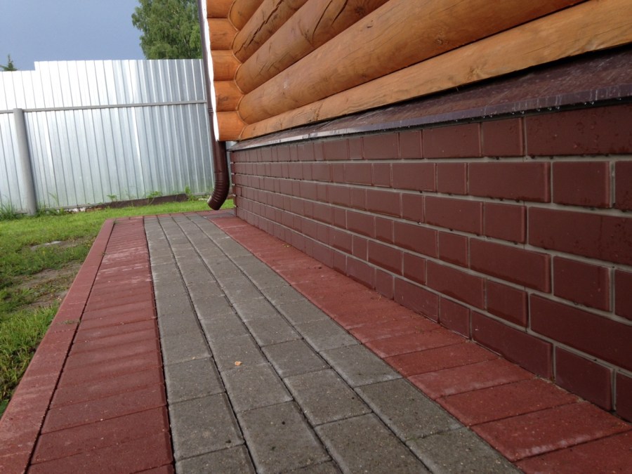 Выполняя ее укладку используют специальный клей, устойчивый к промерзанию. Клеится плитка, как обычный кафель, единственное есть небольшой нюанс, уровень грунта является переменным по всему периметру строения. Перед укладкой необходимо заделать швы раствором для расшивки.
