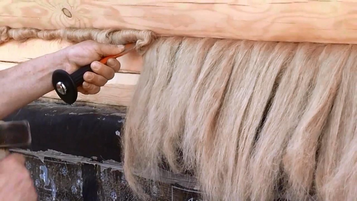 В любом случае наматывать витки льна нужно по направлению резьбы. Конец пряди зажимается пальцем за пределами резьбы, первый виток делается «замком». То есть накладывается крестом, чтобы зажать конец. Затем прядь наматывается как можно туже, виток к витку, без промежутков. По окончании подмотки конец пряди приклеивается на сопутствующий материал ближе к краю резьбы.