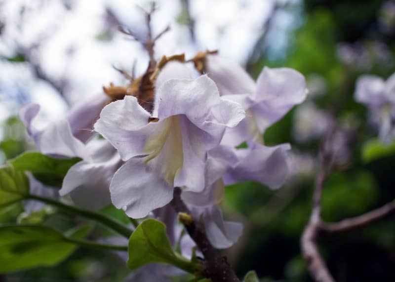 Цветет это необычное дерево обильно. Его цветы фиолетовые, иногда к основному цвету добавляются различные оттенки: от светло-розового до более темно-синего. Часто встречающийся — голубой оттенок.