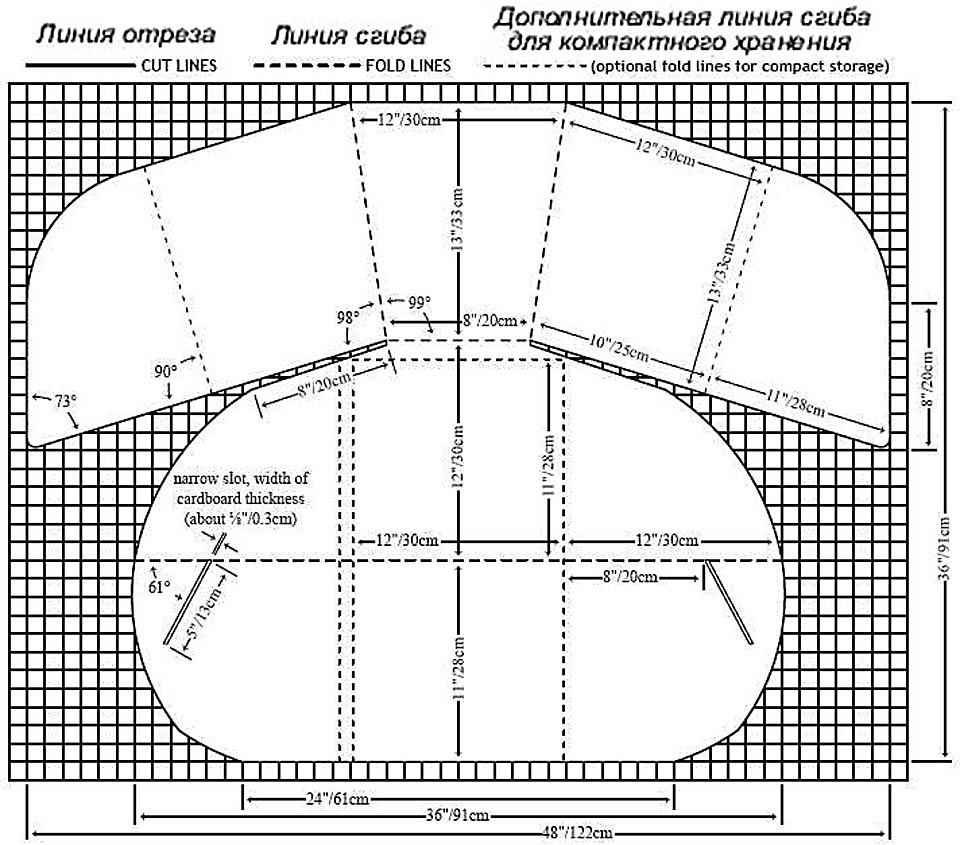 В настоящее время задача построения такого отражателя решена на компьютерах. Чертёж – на рис., о материалах уже сказано. Для более высоких широт шаг координатной сетки и размеры всего рефлектора можно увеличивать, но севернее параллели Рязани делать его уже нет смысла: величина su до кулинарии не дотягивает.