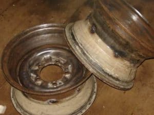 В любом случае начинать следует с обработки самих дисков. Бывшие в употреблении колеса и выглядят соответствующе: металл может потемнеть, иметь остатки облупившейся краски или пятнышки коррозии. Чтобы избавиться от этих нюансов, следует зачистить проблемные места шлиф шкуркой. Если диски были окрашены, можно прокалить их огнем или воспользоваться растворителем.