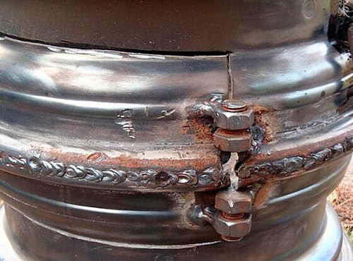 - Далее следует подготовить диски к сварке. Для этого: удаляют остатки краски, ржавчину, зачищают свариваемые поверхности, снимают фаски.