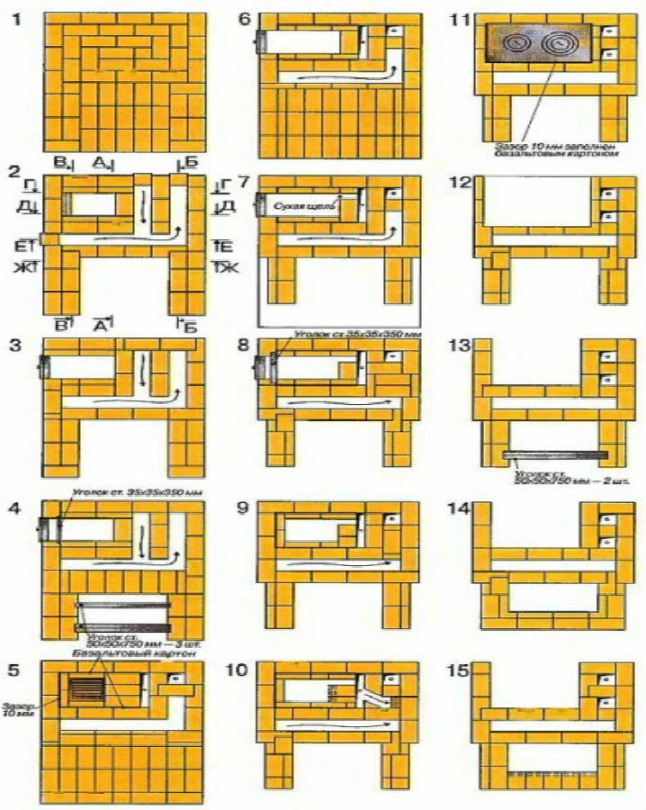- Выкладка огнеупорным и красным кирпичом согласно схеме.