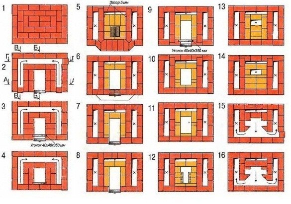 На следующих этапах возводят «тело» печи, строго выполняя инструкции, соблюдая порядовку и выверяя горизонтальный и вертикальный уровни.