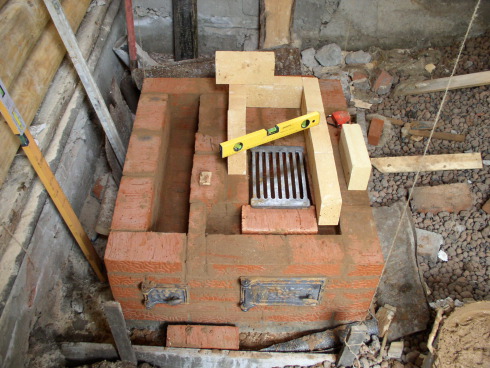 - Выкладываются стенки частично из шамотного кирпича, создаются боковые стенки топочного участка.