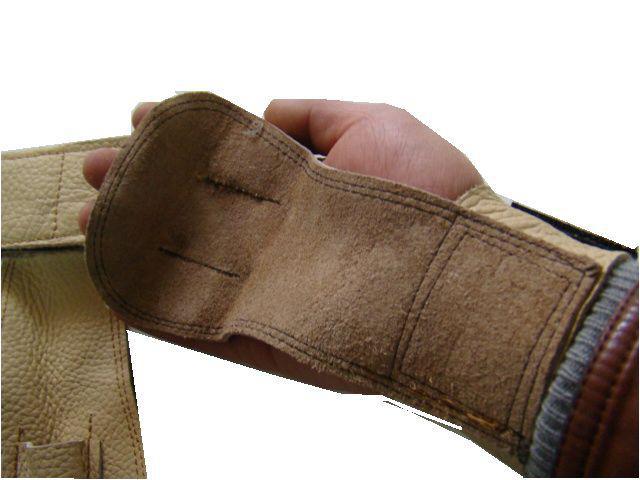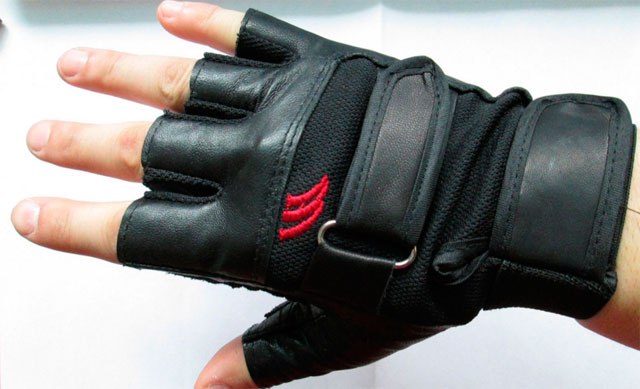 Со стороны ладони эти перчатки для занятий на турнике кожаные, тыльная сторона изготавливается открытого типа для лучшего вентилирования, вдобавок пальцы обрезаны. Кожное покрытие на них достаточно тонкое, а потому при активном тренировочном процессе им уготована похожая судьба, как и для перчаток из х/б.