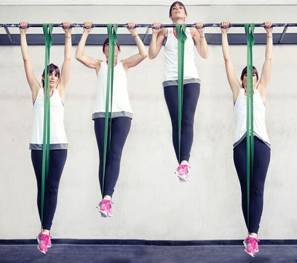 Для подтягиваний используют круглую эластичную ленту, ее легко подцепить к турнику, завернув один край в другой, в виде петли. Таким способом можно поставить стопы или колени в нижний край петли. При натяжении петли тело находится в висе, а при усилии рук, сокращение ленты поможет легче подтянуться к перекладине. Главное, правильно подобрать петлю по нагрузке, то есть – цвету, иначе от ленты не будет пользы.
