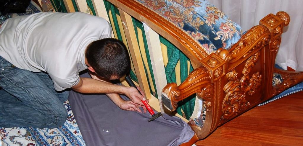 - Выполняя работу по замене обивки, по надобности можно отремонтировать каркас или пружинный блок.