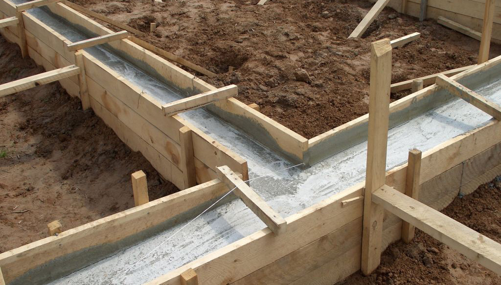 Использование пескобетона при закладке фундамента.