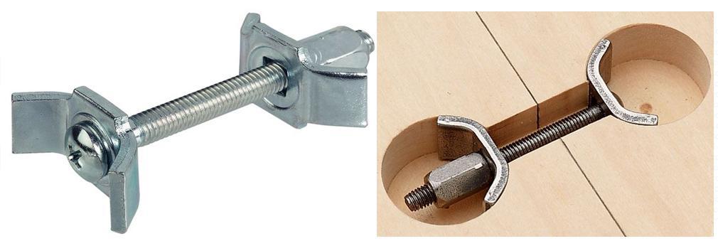 Фиксацию двух частей углового топа из ДСП производят с помощью специальных винтовых стяжек