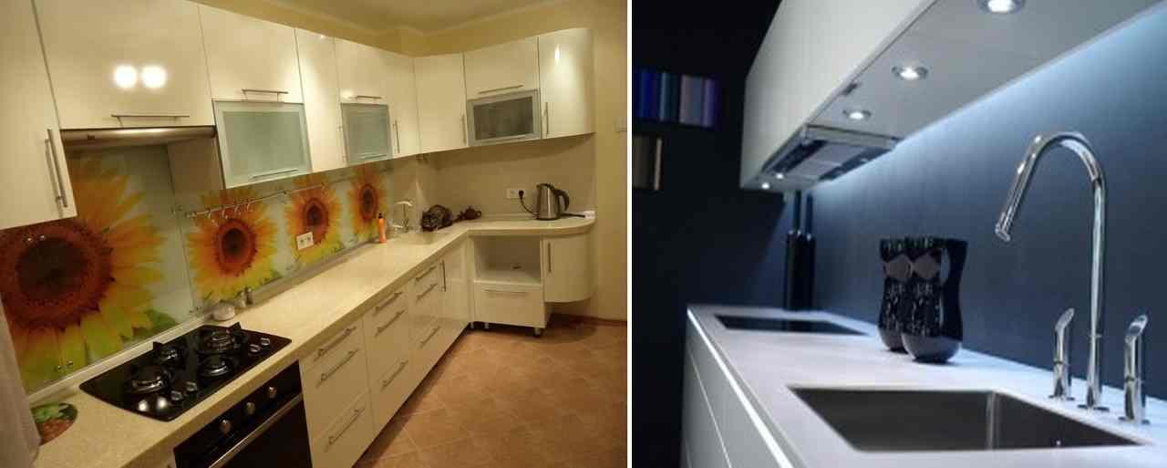 Если кухня прямая, ее оборудуют цельной плитой. Разные угловые модификации производят путем компоновки 2 основ.