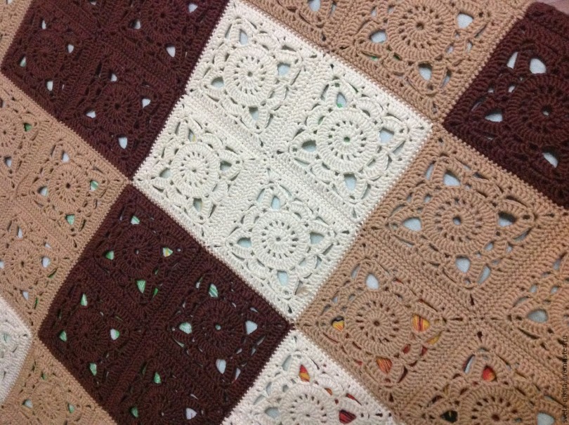 Для покрывала нужно связать своими руками 25 квадратов. Вяжем мотивы по блокам, следуя описанию и схеме.