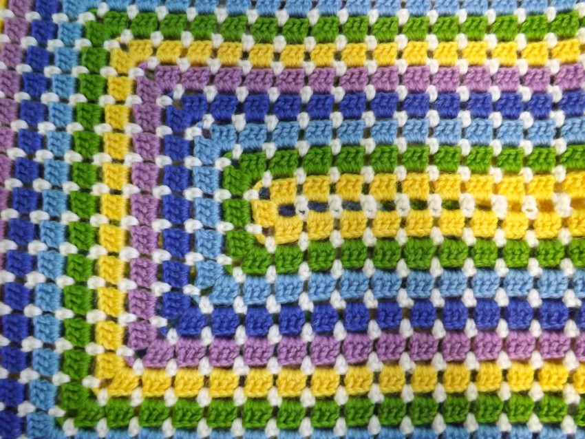 - Площадь будущего пледа рассчитывается исходя из размера постиранного образца. Нужно понять сколько таких квадратиков уйдет на все изделие.
