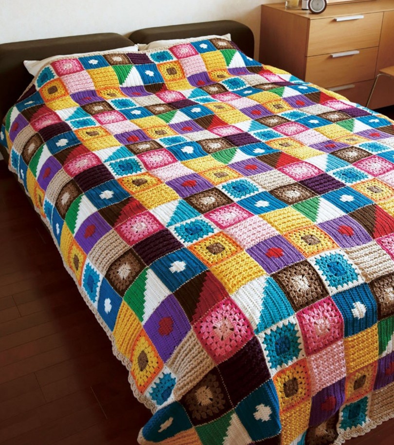 Такой плед можно связать спицами или крючком. Крючком нужно связать квадраты столбиками без накида и вышить их по схемам. И он будет согревать вас холодными зимними вечерами не один год.