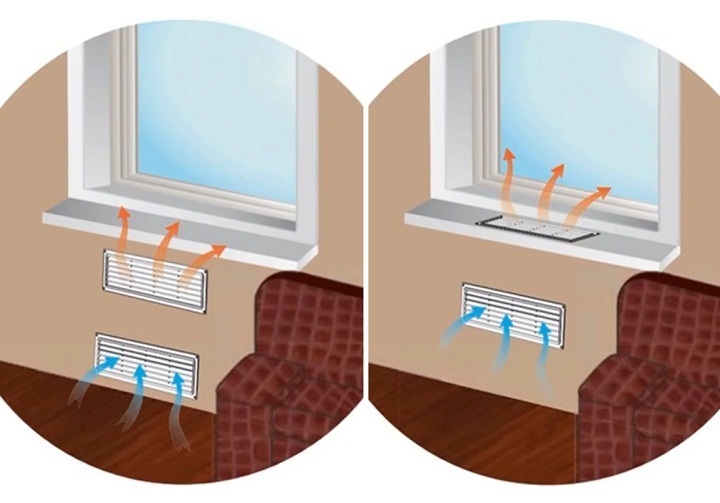 - Если у вас широкий подоконник, установите специальные решетки или сделайте ряд отверстий на уровне радиатора, чтобы теплый воздух доходил до окон