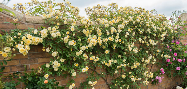 Розами Клаймбер обычно декорируют стены. При этом их раскладывают веером, стараясь расположить побеги горизонтально. Тогда из них вырастет больше волчков, на которых появятся многочисленные цветочки. К стене розы крепятся при помощи решеток или крючков.
