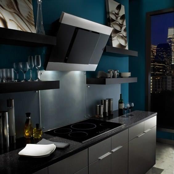 Наклонная вытяжка располагается к варочной поверхности под небольшим углом и похожа на экран плазменного телевизора. Огромный плюс подобных воздухоочистителей в компактности конструкции — у плиты находиться намного приятнее, так как ничего не «давит» сверху. Технология производства таких моделей не стоит на месте и производители придумывают всё новый дизайн агрегата, превращая его в настоящее украшение кухни. Также в таких моделях грязь не накапливается на кромках, так как воздух устремляется прямо в фильтр.