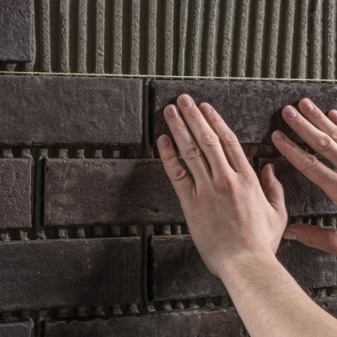 - Повышенная вязкость клеящего раствора. Только клей достаточной вязкости и концентрации сможет удержать клинкерную плитку во время застывания. В противном случае элементы могут отходить от поверхности еще в процессе наклеивания.