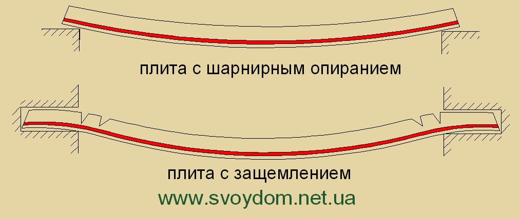 Рассмотрим на рисунке, к чему приводит защемление плиты на опоре.