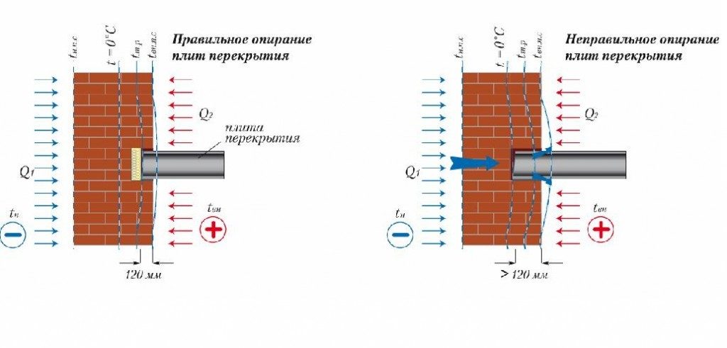 Наглядная схема того, как правильно и как неправильно осуществлять опирание плит перекрытия